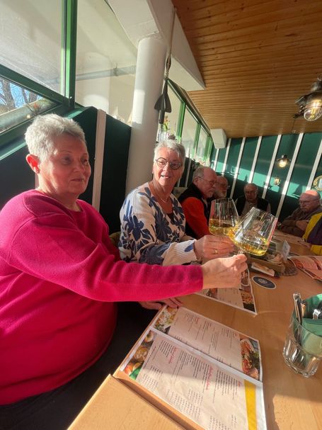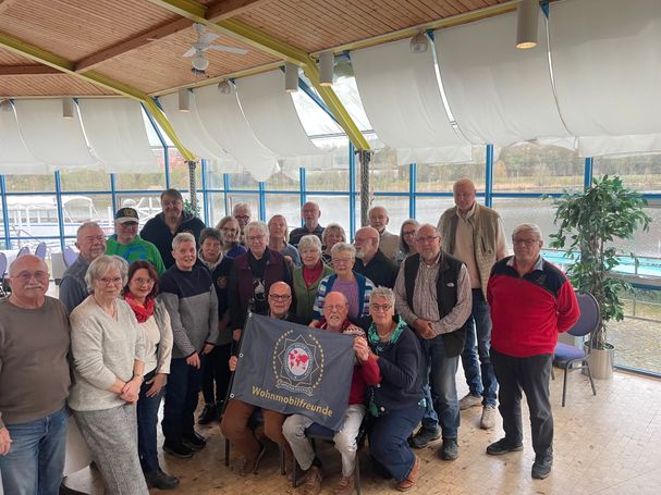 Tollerweise kamen 15 Wohnmobile mit 28 Gästen, darunter 5 „Neulinge“. Wie auch sonst, war die Stimmung von vornherein bestens und viele gute Gespräche waren die Folge. Das Wetter hat allerdings verhindert, daß wir die berühmte „Tafel“ haben aufbauen können, da teilweise Graupelschauer und Starkwind einen längeren - gar noch sitzenden – Aufenthalt von vornherein zunichte machte. Gott sei Dank war vor Ort aber eine groß genuge Self-Service-Gastronomie vorhanden und am Freitag öffnete auch die Platzgastronomie. In beiden Unterkünften konnten wir verpflegt werden und auch entsprechend klönen – wie gesagt, die Stimmung war hervorragend.