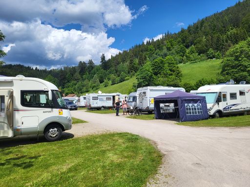 Überflutungen im ostwärtigen Baden-Württemberg und Bayern führten zu kleinen Umwegen bei der Anfahrt – vor allem bei unseren österreichischen Kollegen. Erstaunlich war für mich nur, dass in den Niederlanden Skizzen im Netz standen, die Baiersbronn – im speziellen Mitteltal, in dem der Campingplatz liegt – unter Wasser zeigten. Die Murg war aber nur ein leicht angeschwollener Bach und trat nicht über die Ufer. Unsere niederländischen Kollegen traten nach kurzer Rückfrage bei mir dann auch ihre Reise zu uns an.